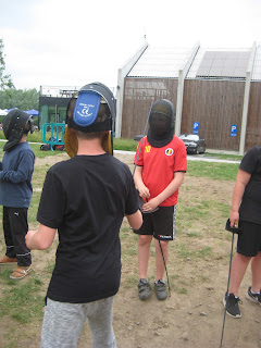 Vandaag trokken we naar De Gavers. Daar konden we mountainbiken, schermen, kano varen, voetballen en nog veel meer. Gelukkig hadden we geen regen! 😜